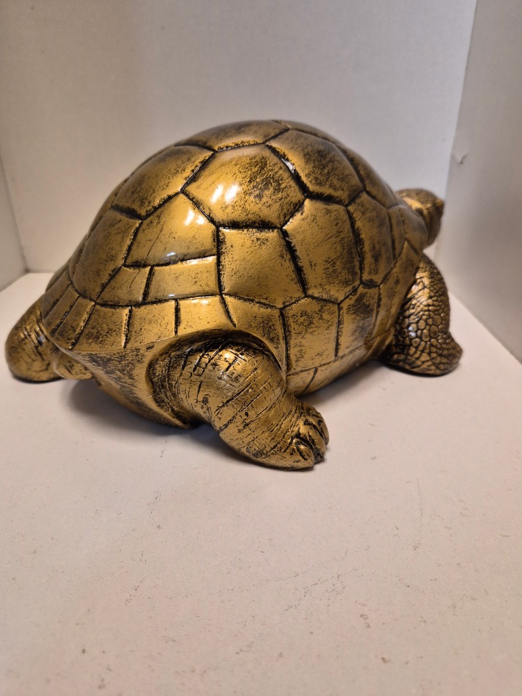 Voeg een vleugje luxe toe aan je interieur met deze prachtige goudkleurige schildpad van polyester. Met een lengte van 28 cm, een breedte van 19 cm en een hoogte van 13 cm, straalt deze decoratieve schildpad elegantie en stijl uit. Perfect als eyecatcher in huis of op kantoor voor een chique en unieke uitstraling!