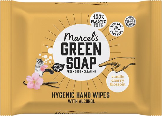 Handzeep doekjes in een zakje van 15 stuks, met een marcel’s green soap vanille geur, ideaal voor hygiĆ«nisch gebruik en fris ruikend.