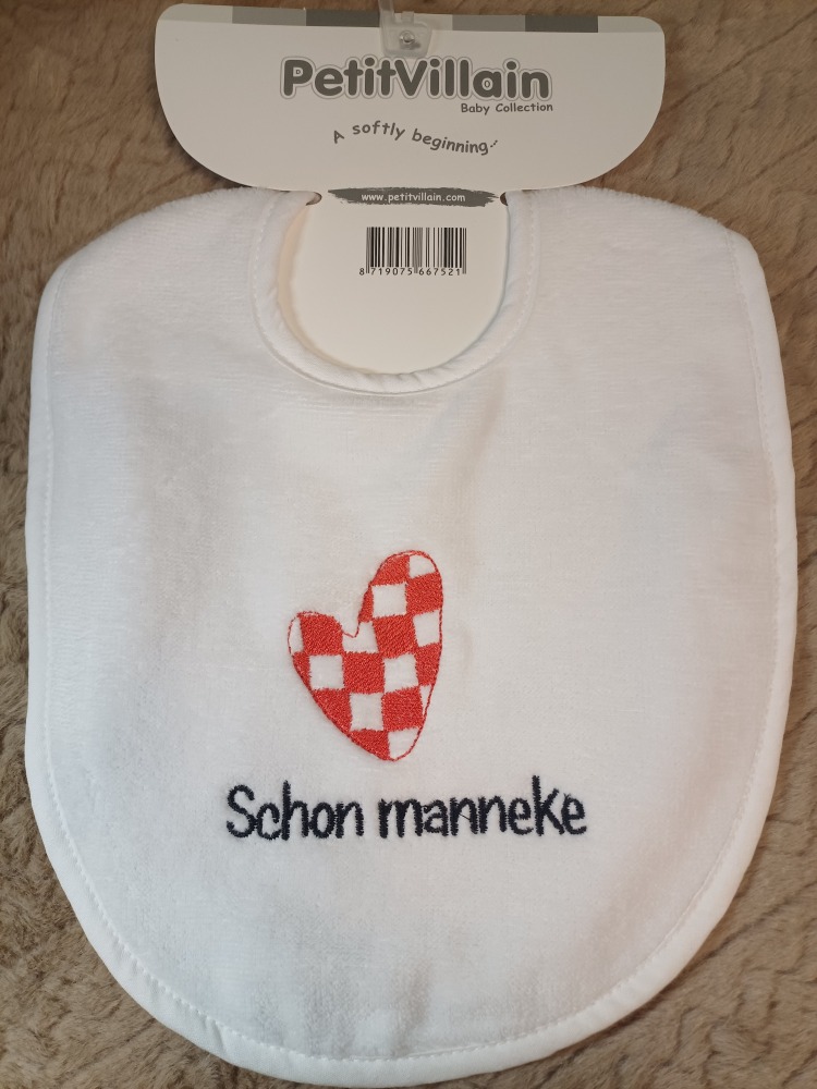 Maak kennis met ons schattige babyslabbertje “Schon Manneke” met Brabants hartje erop! Dit gezellige slabbertje houdt je kleintje heerlijk schoon tijdens het eten en straalt Brabantse trots uit. Gemaakt van zachte, huidvriendelijke materialen voor maximaal comfort en duurzaamheid. Perfect als lief cadeautje of als stoere toevoeging aan de kleertjes van je kleine mannetje. Laat je baby stralen met dit leuke Brabantse slabbertje!