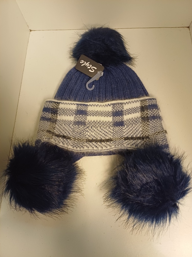 Een blauwe wintermuts gemaakt van synthetisch stof, perfect voor koude dagen en comfortabel draagcomfort.