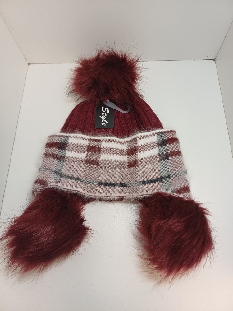 Een bordeau rood wintermuts gemaakt van synthetisch stof, perfect voor koude dagen en comfortabel draagcomfort.